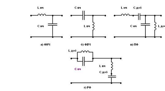а) ФНЧ б) ФВЧ в) ПФ г) РФ