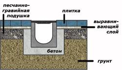 Пример установки водоотвода в тротуарах или дорогах с асфальтовой поверхностью