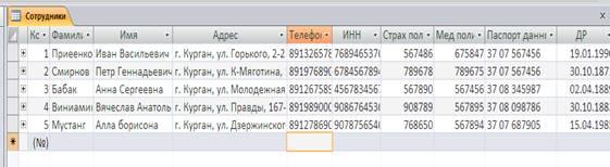 Рисунок 1 – Таблица «Сотрудники»