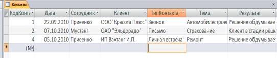 Рисунок 3 – Таблица «Контакты»