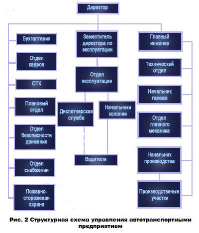 Производственная структура автотранспортного предприятия формируется следующим составом: