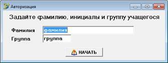 надпись «Задайте фамилию, инициалы и группу учащегося» |