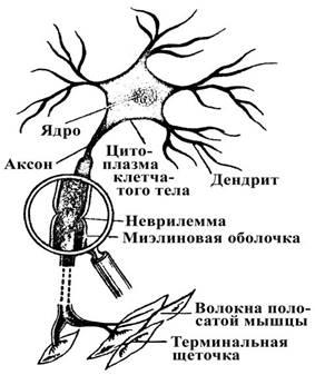 Рабочим органом для соматического отдела нервной системы является поперечно-полосатая скелетная мышца, в вегетативной дуге эффектор – железа либо мышца (гладкая или поперечно-полосатая сердечная). Между эфферентным путем и рабочим органом расположен химический мионевральный либо нейросекреторный синапс.