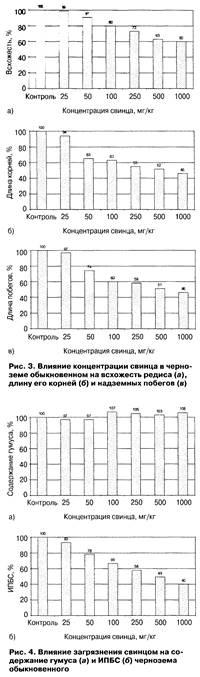 Ниже приведена классификация загрязнения черноземов по содержанию в них свинца и нарушению экологических функций, а также ответные действия по "оздоровлению" почв — способы санации [1, 4]: Нарушения экологических функций почвы не происходит, пока значения ИПБС не снижаются более чем на 5 % [5]. Такое снижение зарегистрировано при концентрации свинца более 45 мг/кг. Меньшее содержание можно считать экологически безопасным.