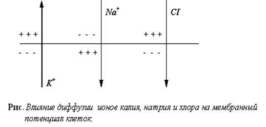 Как было установлено, возникновение потенциала покоя обусловлено, в основном, наличием концентрационного градиента ионов калия и неодинаковой проницаемостью клеточных мембран для различных ионов.