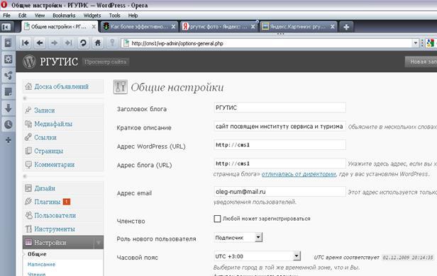 Зайдем в настройки---общие, там в графе «краткое описание» напишем чему именно посвящен сайт, эта надпись появиться в шапке сайта под основным названием, в нашем случае это название «РГУТИС».