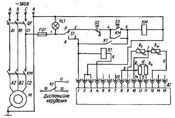 Установка УВС-16А призначена для досушування сіна за допомогою вентилятора з електродвигуном потужністю 15 кВт. Схема керування установкою наведена на рис.23.