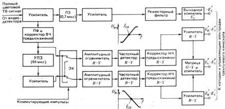 Рис. 9. Упрощенная функциональная схема декодирующего устройства системы СЕКАМ