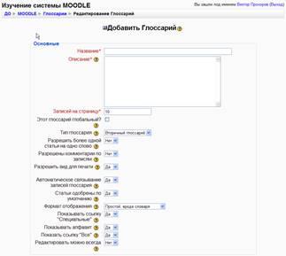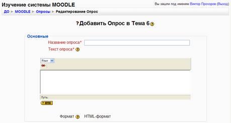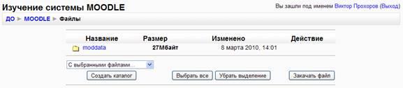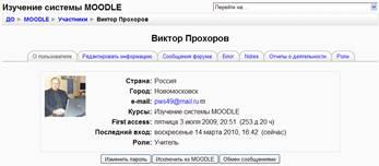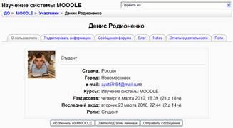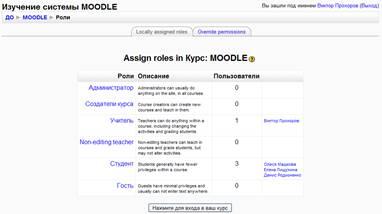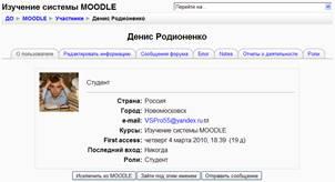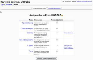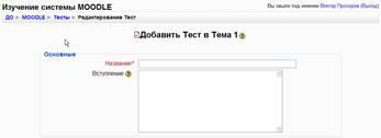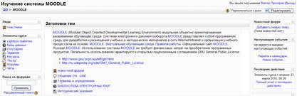 Предположим, что администратор системы создал новый обучающий курс "Изучение системы MOODLE" и предоставил вам права преподавателя на данный курс.