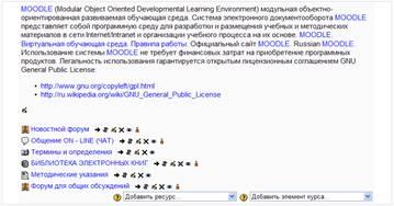 Рисунок 2.1 – Окно системы дистанционного обучения MOOLLE