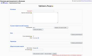 Преподаватель может быть назначен одновременно на несколько курсов. После входа на курс, откроется окно с блоками управления и содержимым курса. Можно смело экспериментировать с настройками ресурсов и элементов обучающего курса, особенно на этапе изучения возможностей системы MOODLE и создания нового курса. Любые действия никак не отразятся на работе системы MOODLE в целом, изменение настроек курса влияет только на работу текущего курса. При этом рекомендуется пользоваться встроенной Справочной системой для получения подсказок и дополнительной информации. Вызвать окно справки можно щелчком мыши на иконке со знаком вопроса напротив элементов управления и настроек. Другим источником получения справочных материалов о работе системы и ее элементов является Internet сайт официального разработчика http://moodle.org. Для того чтобы открыть данный ресурс нужно воспользоваться иконкой со знаком "!", которая присутствует на некоторых страницах в режиме редактирования курса.