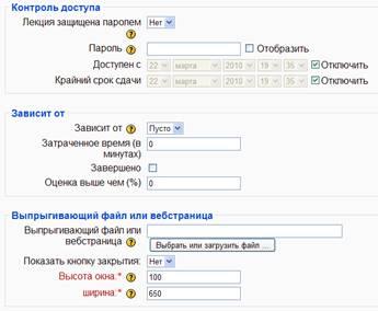 Если вы желаете, чтобы все материалы учебного курса подавались в определенные интервалы дат и времени, то некоторые элементы (например, Тест и Задание) предполагают выставление даты и времени начала и окончания события. Другие элементы можно просто скрыть от показа студентам на некоторое время.