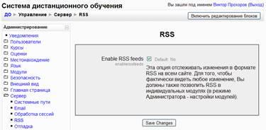 Который разрешит формирование RSS новостей на вашем сайте. Затем в блоке Администрирование откройте Модули, Элементы курса и щелкните ссылку Установки напротив модуля Форумы: