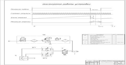 Установка работает после наладки и пуска по замкнутому циклу. Циклограмма работы установки представлена на рисунке 2.