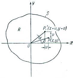 где угол закручивания на единицу длины. Будем считать угол закручивания малым. Рассмотрим сечение стержня, которое находится на расстоянии z от закрепленного конца. Точка Р с координатами x, y, z в результате деформации перемещается в точку Р’(x+u, y+v, z+w). На рисунке 2 показана точка Р’1, являющаяся проекцией Р’ на плоскость xy.