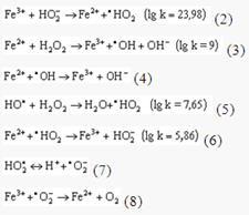 Fe2+ + H2O2 => Fe3+ + OH- + ·OH (радикал гидроксила)