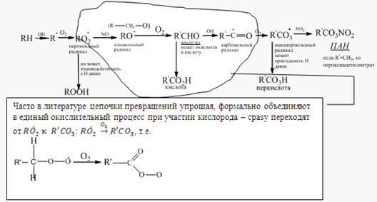 Давая ацилпероксидный радикал, который в конечном итоге приводит к образованию важнейших (с точки зрения воздействия на ОС) продуктов веществ группы ПАН – пероксиацилнитратов.