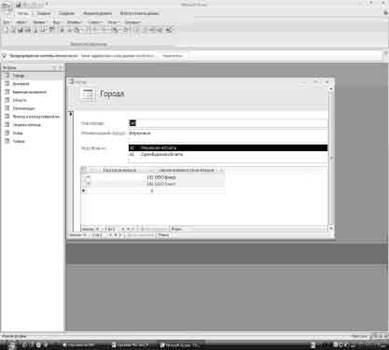 Таблица города в режиме конструктор