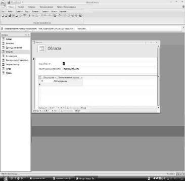 Таблица области в режиме конструктор
