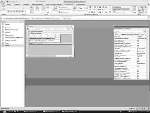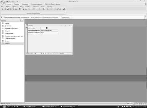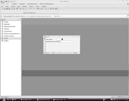 Таблица склад в режиме конструктор