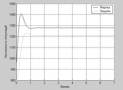 А в этом случае численности популяций растут до определенного равновесного значения.