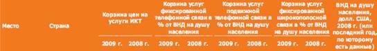 Таблица 2. Корзина цен на услуги ИКТ и составляющие корзины услуг ИКТ 2009, 2008гг