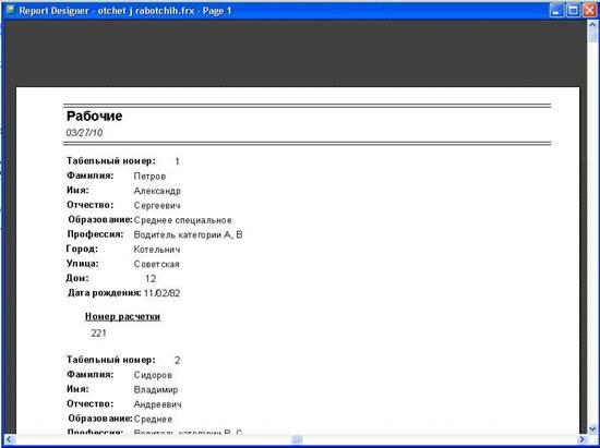 На рис. 26 показан отчет о рабочих.