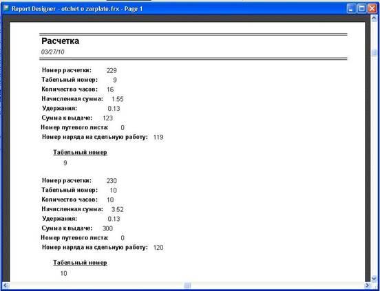 На рис. 27 показан отчет о заработной плате.