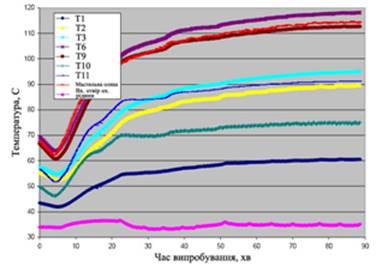 - визначення зміни температури в певних точках системи в залежності від температури охолоджувальної рідини і часу випробування.