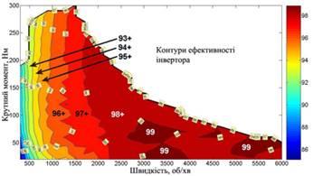 – Об’єднані контурні карти ефективності системи двигун-інвертор