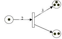 Перехід дозволений (збуджений) якщо всі його вхідні позиції мають фішки. Спрацьовує довільний перехід з безлічі дозволених. При спрацьовуванні перехід вилучає фішки з усіх своїх вхідних позицій і поміщає в усі свої вихідні позиції. Спрацьовування переходу відбувається миттєво. Графічна інтерпретація спрацьовування переходів показана на рис.2.