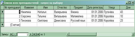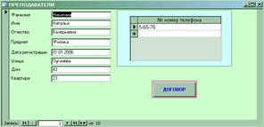 6.2.4 Заполнение таблицы “ПРЕПОДАВАТЕЛИ”