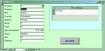 6.2.2 Заполнение таблицы “КЛИЕНТЫ”