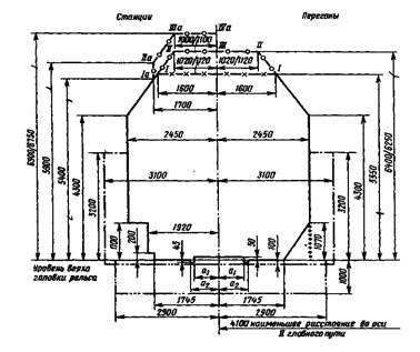 | от верха головки рельса на станциях (минимальное) |
