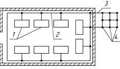 | 1 – устаткування, що заземляється; 2, 3 – заземляючі провідники (магістралі); 4 – заземлителі. |