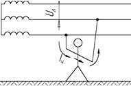 Розглянемо 2-х полюсне дотикання до однофазної мережі (рис. 2.)