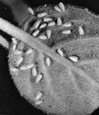 - Это мелкая белая мошка, хорошо заметная невооруженным глазом. Зеленоватые личинки расселяются на нижней стороне листьев, высасывают клеточный сок и оставляют сахаристые выделения. На листьях появляются слабо заметные белесые или желтоватые пятна. Пораженные листья скручиваются, желтеют и опадают.