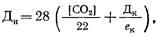 где Дк — доза коагулянта в пересчете на безводный продукт, Мг/л; [СО2] — содержание в исходной воде оксида углеродa(IV), мг/л; ек — эквивалентная масса активного вещества коагулянта, мг/мг-экв.