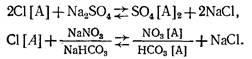 Хлор-ионирование осуществляется после предварительного натрий-катионирования. На натрий-катионитных фильтрах протекают реакции, рассмотренные выше и обрабатываемая вода умягчается, в ней остаются только соли натрия: NaHC03, Na2SО4, NaCl, NaNО3. При пропуске натрий-катионированной воды через сильноосновный анионит в хлор-форме протекают реакции обмена анионов, содержащихся в Na-катионированной воде, на ионы хлора, находящиеся в анионите, а, именно: