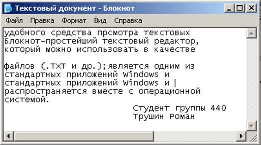 4. Нажать Enter,после чего откроется окно Блокнота.