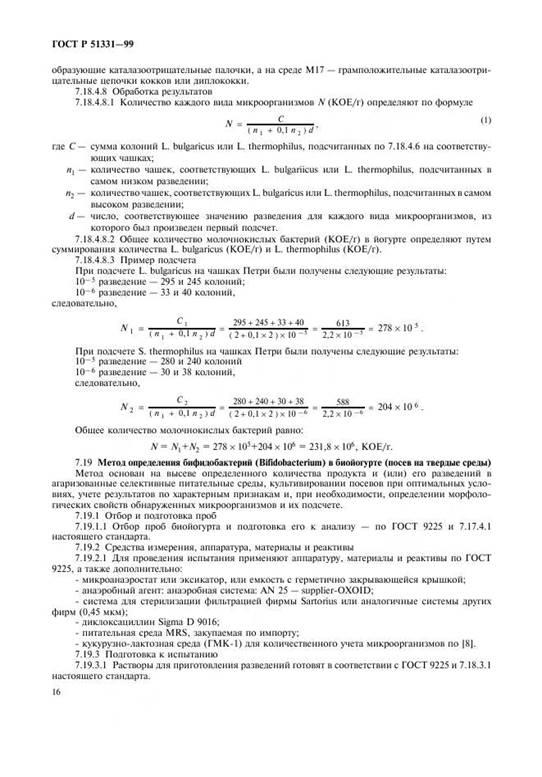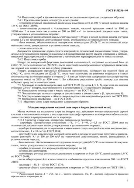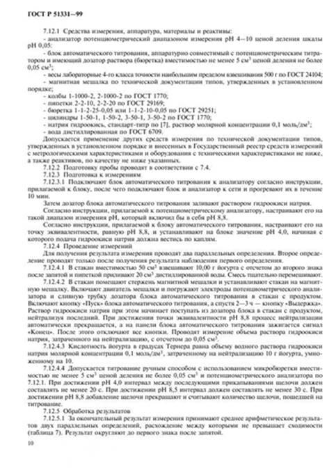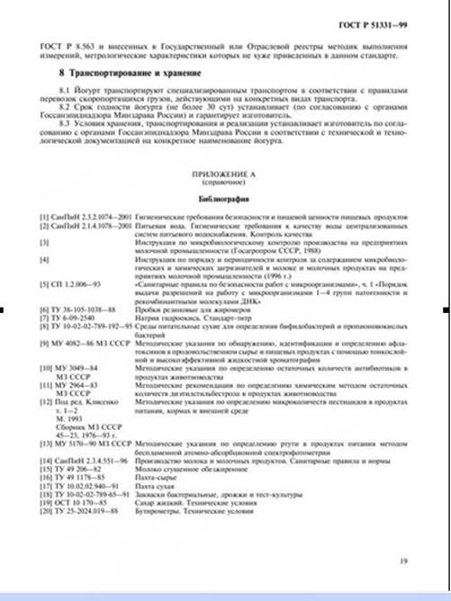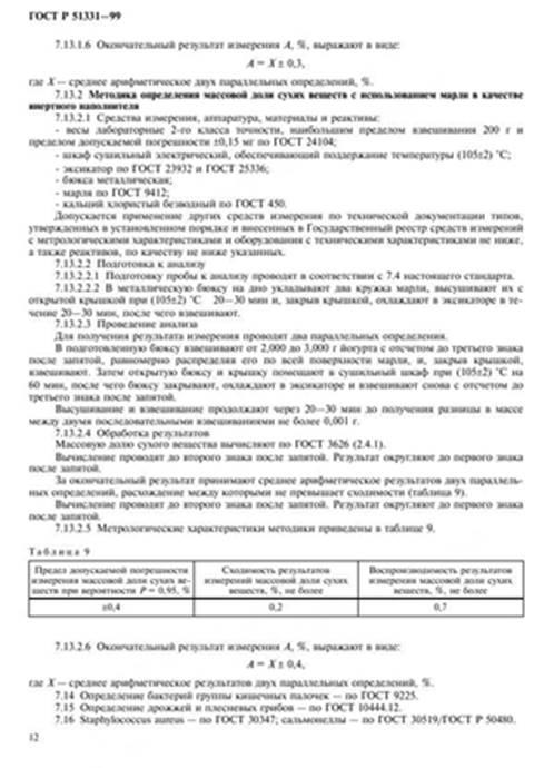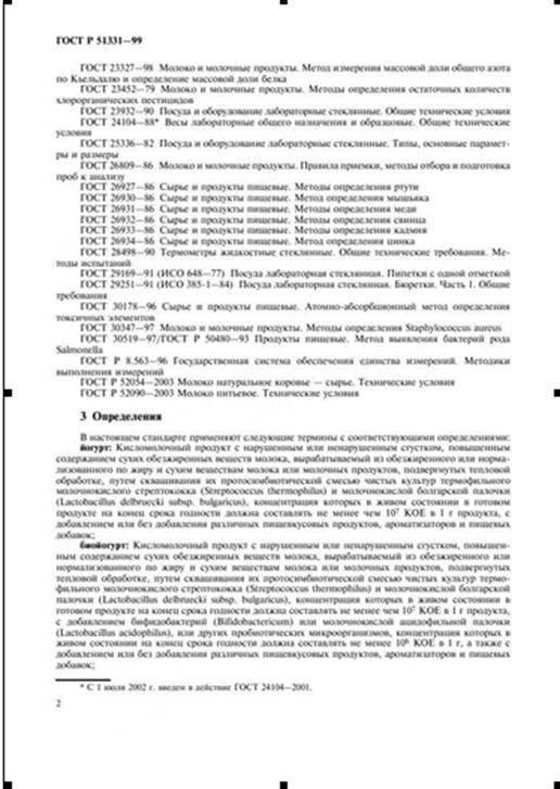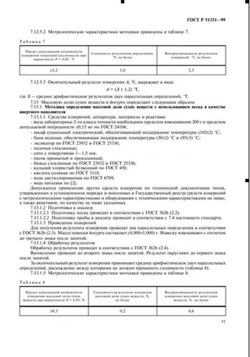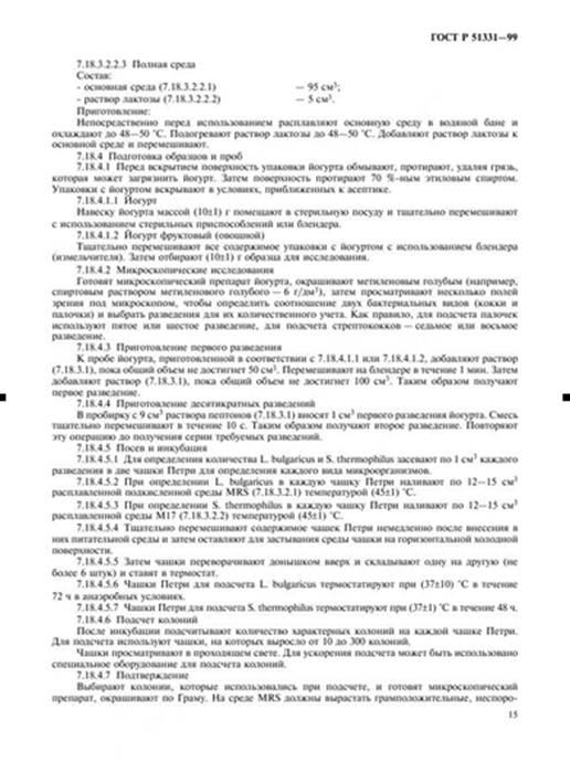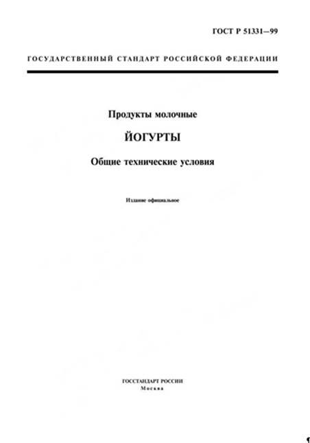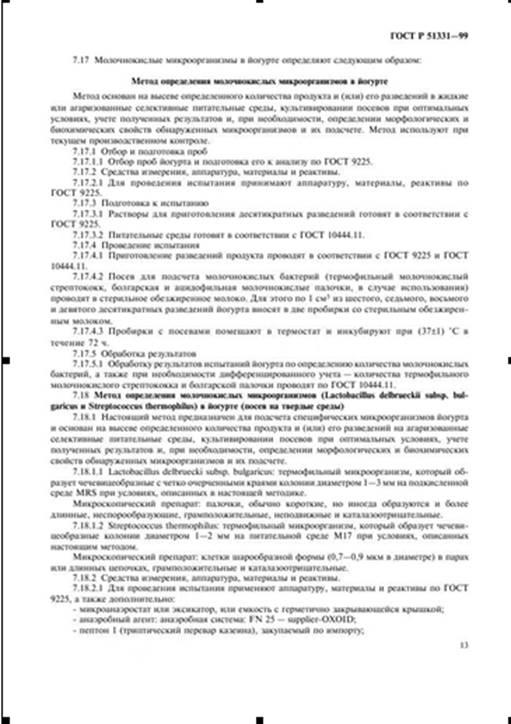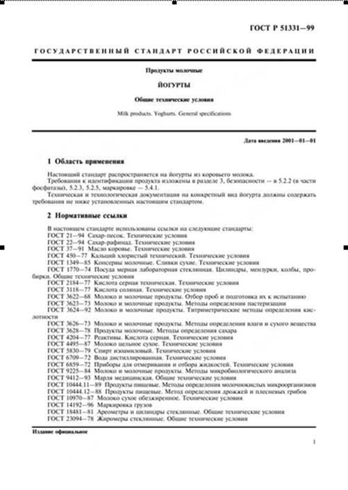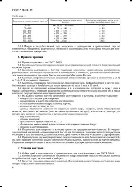 Основные требования к качеству йогуртов молочных по НД ГОСТ Р 51331-99: