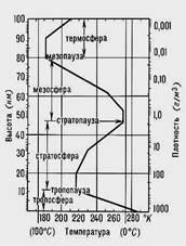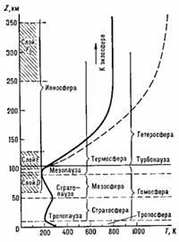 В зависимости от распределения температуры атмосферу Земли подразделяют на тропосферу, стратосферу, мезосферу, термосферу и экзосферу(Рис 2).