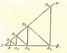 к стороне OQ, согласно предположению, пересекут луч ОР в точках В,В,В, …,Вn
