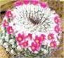 — с шаровидным стеблем и тонкими, острыми колючками белого и коричневого цвета. Между сосочками опушение, как будто белые ватные шарики. Цветет ярко-розовыми цветками.
