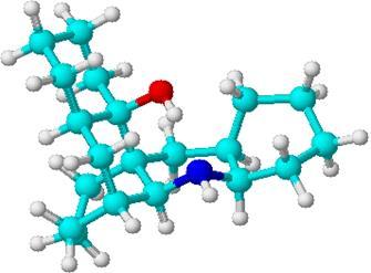 При помощи компьютерных расчетов нами была проведена 3D оптимизация (с использованием алгоритма CHARMM [29]). Группа –OH пространственно сближена с NH-группой и эмпирически рассчитанное расстояние между ними составляет 1,71 А. Это и приводит к прочной внутримолекулярной водородной связи.