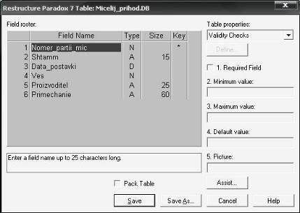 Таблиця "прихід міцелію" рис 4.1.1 містить у собі інформацію про надходження на склад ресурсу міцелій. Має ключове поле номер партії міцелію. Це основне й унікальне значення використається із прив'язкою в базі паспорт партії мал.4.1.3 Маючи загальне поле вони зв'язуються по ньому в співвідношенні один до багатьох.