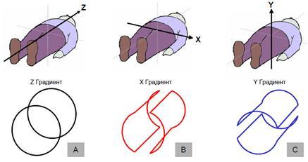 Градиентные катушки представляют собой набор проводов в магните, которые позволяют создавать дополнительные магнитные поля, в некотором отношении, накладывающиеся на главное магнитное поле B0