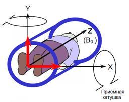 не проходит сквозь нее. Единственный способ выполнить это требование заключается в помещении приемной катушки под правильными углами к B0