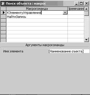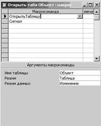 Аналогично создаются кнопки и присоединяемые к ним макросы для других элементов базы данных. Структура макросов для кнопок Открытие таблиц: Объект