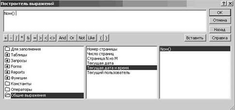 ) введем выражение =”Страница ” & [Page] &" из ”& [Pages] (Рисунок 13). Для даты в свойствах поля